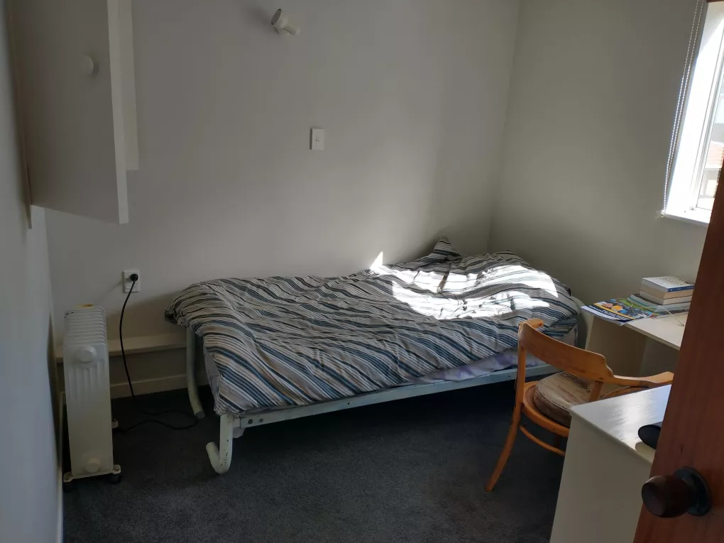 The room available is small but has a built-in wardrobe and can fit a double-bed. You can move into the room with the existing furniture if you like: 1 x single bed, 1 x desk + chair, 1 x chest of drawers.