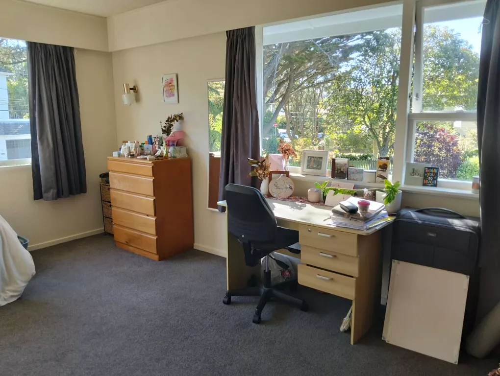 The house is a huge, warm 4 bedroom place with an open-plan lounge, kitchen and dining area. There is also an office and two bathrooms. It gets all day sun and has a great deck out back and room for a vege garden. It has a large lounge/living area and kitchen with enough space for multiple of us to work from home and is perfect for having friends around.