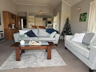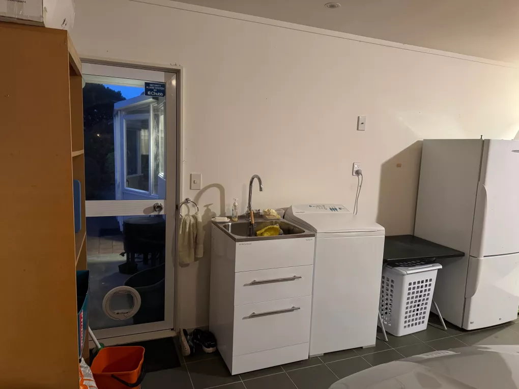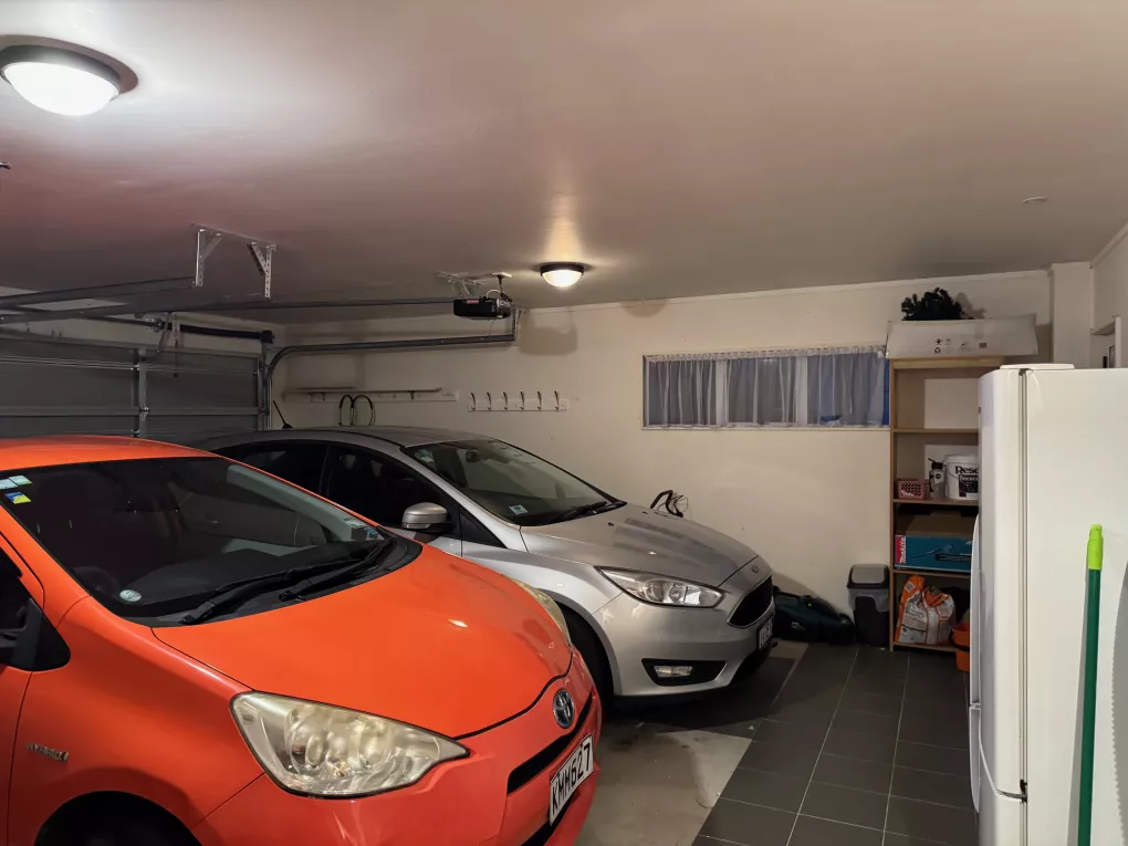 The house has a conservatory that is bathed in afternoon sun, a heat pump in the lounge, a heat-transfer system, and most of the windows are double-glazed. The house also has a double garage with internal access (bonus!) for storage and parking. The house is fully furnished, except for the two available bedrooms. The house has gas water heating.