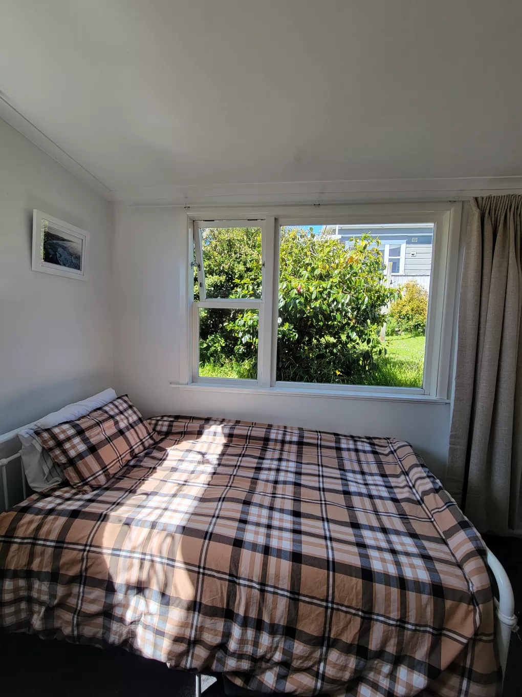 The room gets morning sun from the east window and is kitted out with brand new thermal curtains. Can come unfurnished or furnished with a bed and clothes rack if needed. The flat has two toilets (full bathroom and a second toilet), a dryer, a dishwasher, free power from 9 pm - 12 am, and two parking bays (off-street parking).