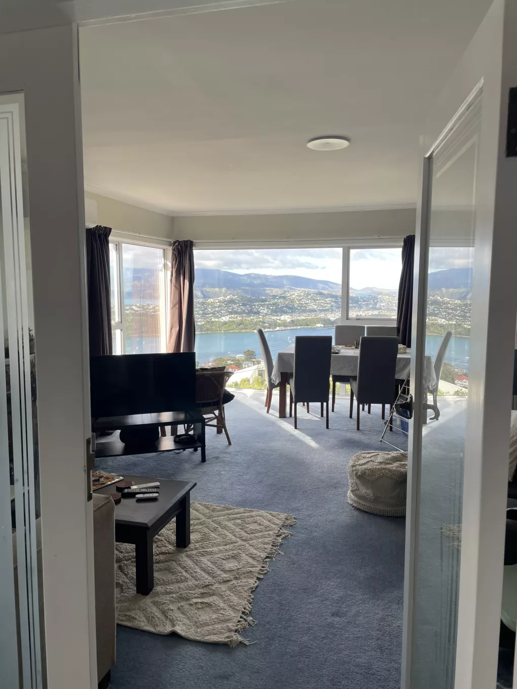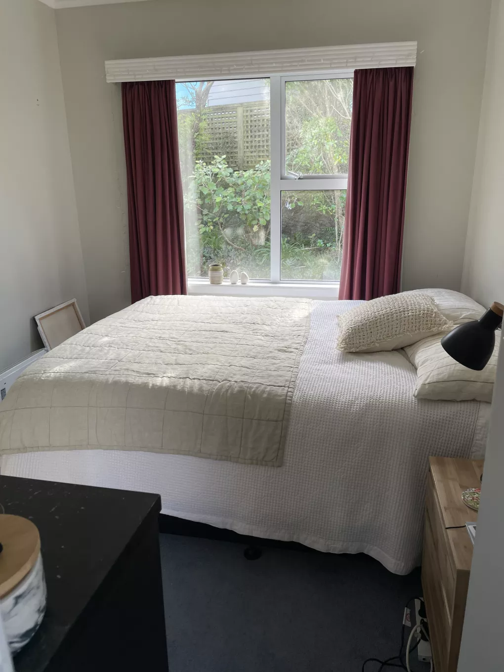 Come live in this beautiful gals flat! Super close to town (10mins down to CBD or 10mins to the beach!), fab off-street parking (space for 4 cars) and amazing views. The Room is small but comfortably fits a queen bed (pictured) and drawers plus has a built-in wardrobe. The flat has heaps of other storage space and all the usual whiteware including a heatpump and an extra freezer in the laundry. You’ll be living with 3 other lovely women in their late 20’s/early 30’s who are kind and considerate. Move in date is January 18th. Bond is $680.