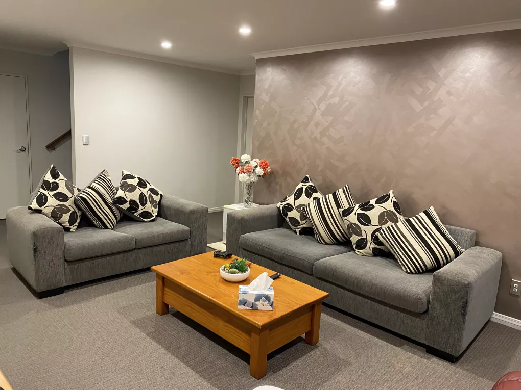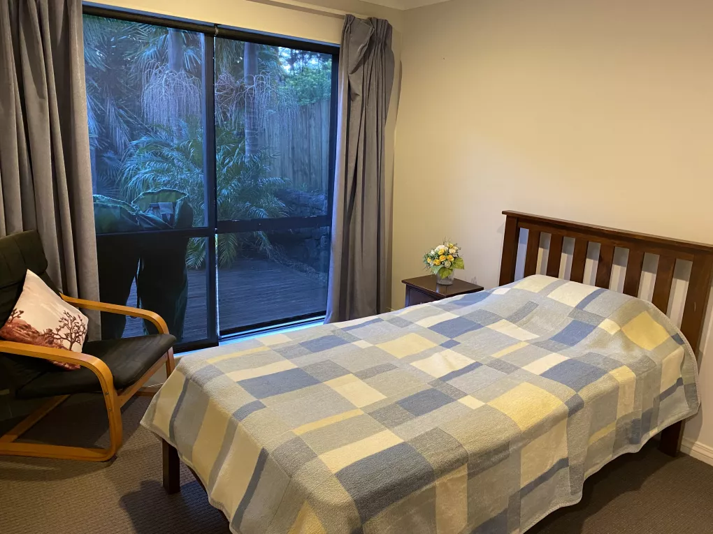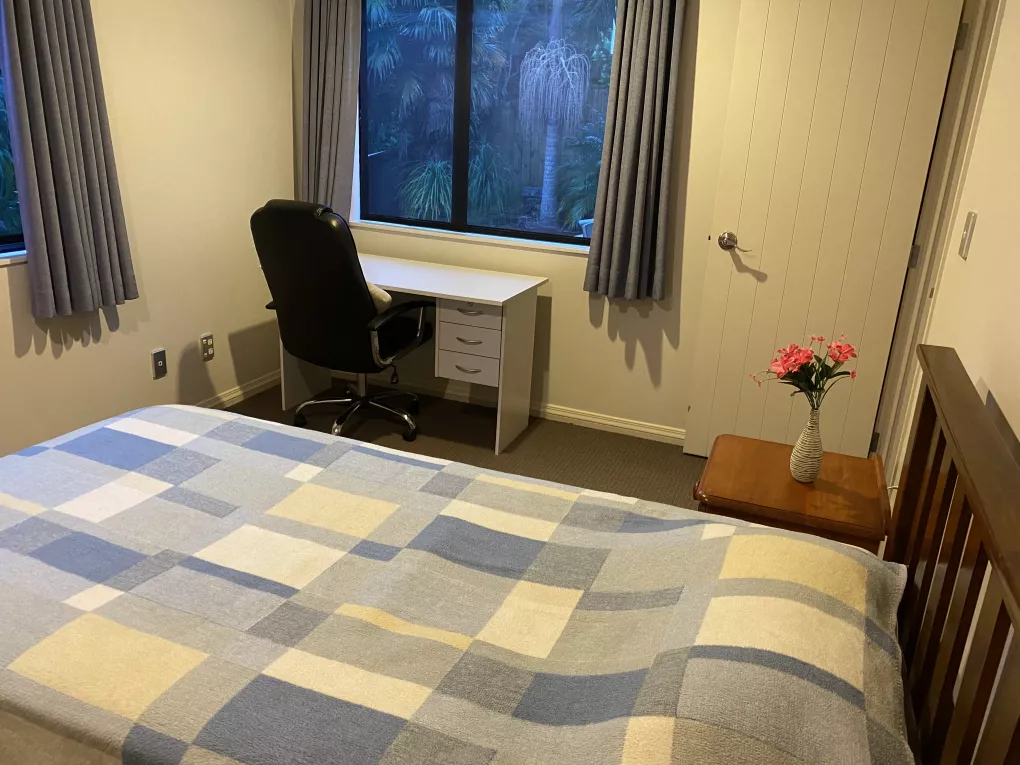 We have two vacant bedrooms to rent. Each one has a bed, a bedside and a wardrobe. One of them has a desk and a chair too. There’s a third bedroom on that floor occupied by my son who is a young adult. We are looking for two male tenants in their mid twenties to mid thirties. They should be tidy with high Christian manners and church attendees. The bedrooms have their own living room, deck and bathroom. Rent includes power, water and internet.