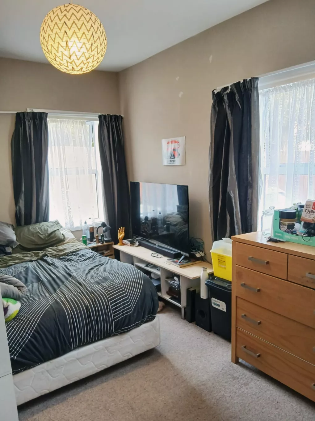 A warm,sunny bedroom, perfect for both privacy and comfort.