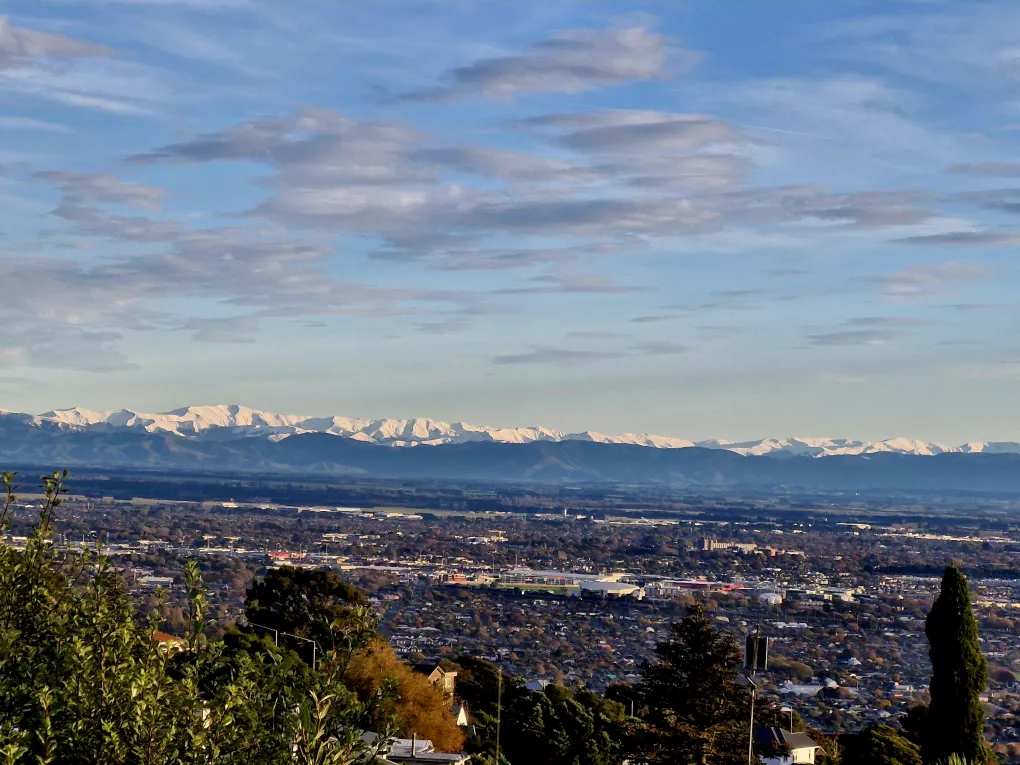 The flat comes with a communal terrace overlooking the hills and wake up to the stunning view over Christchurch city.