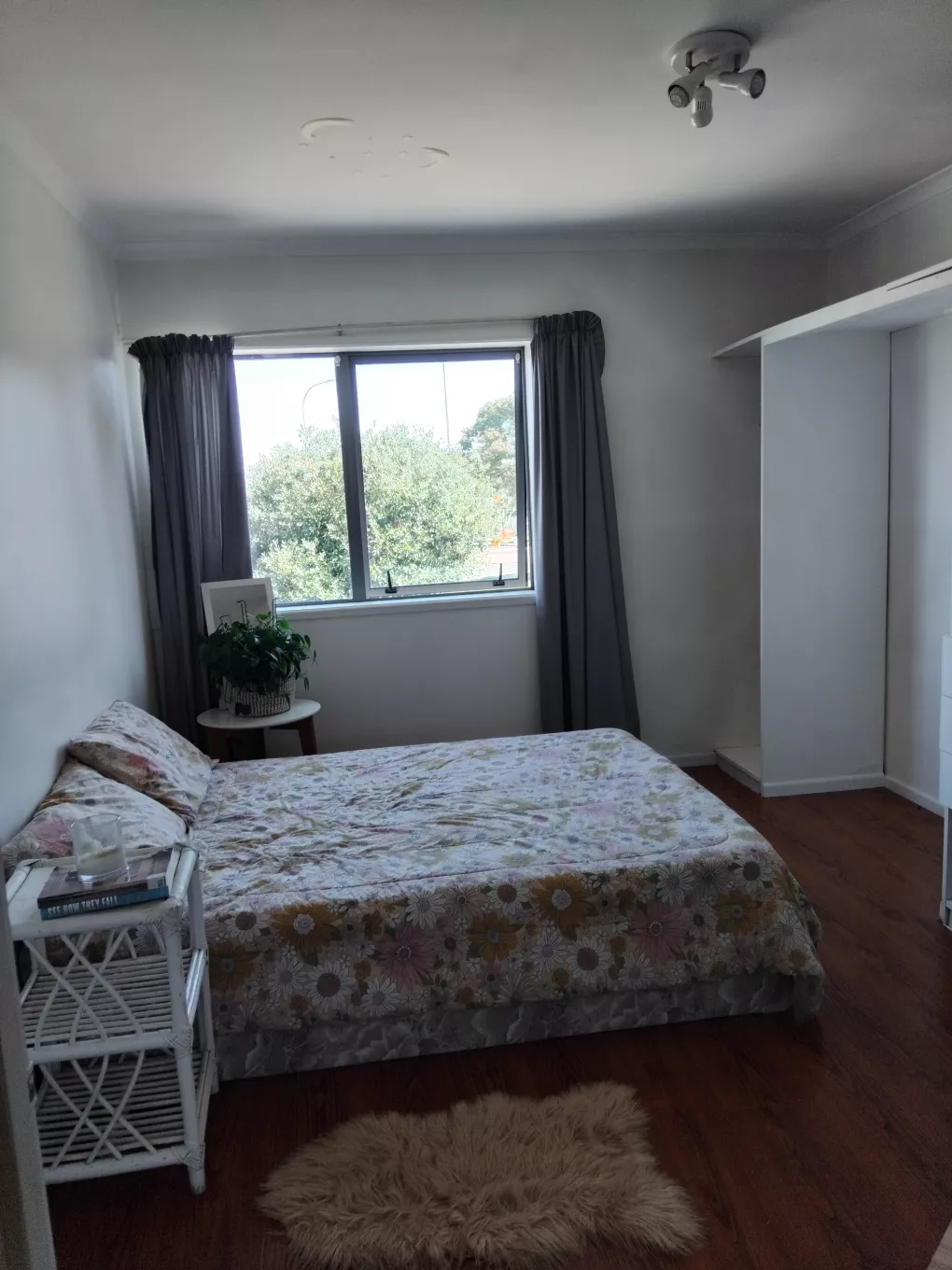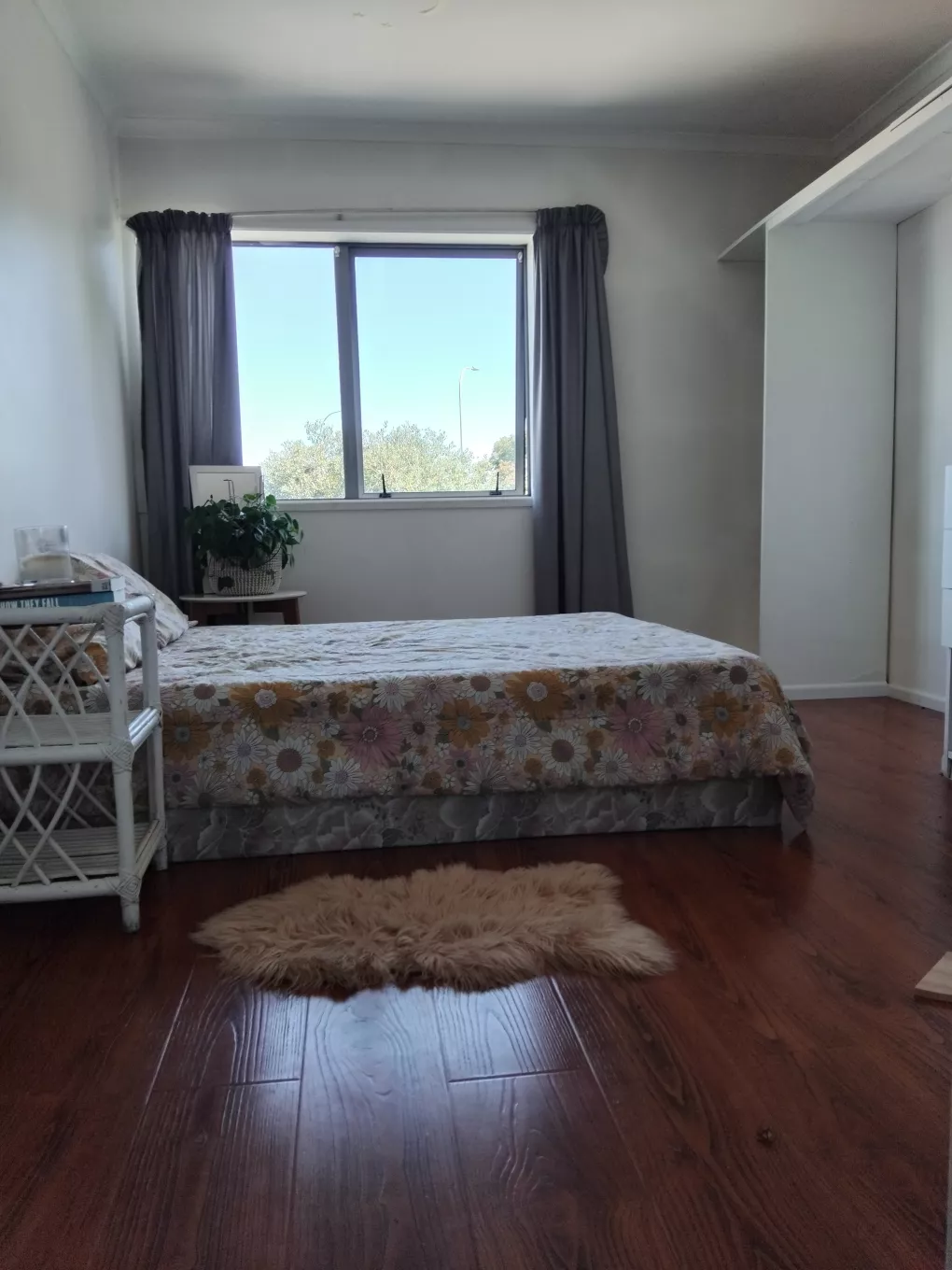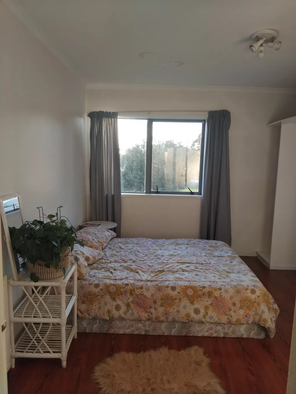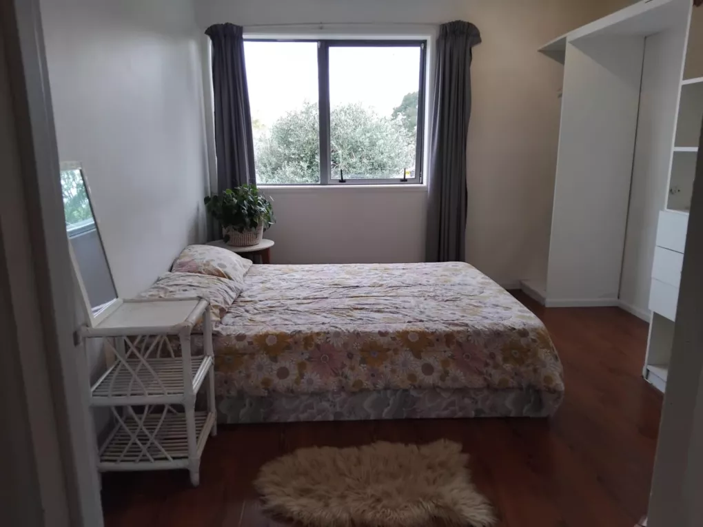 Your double room can be furnished OR unfurnished with double bed & side table (as seen in Main photo). Has inbuilt storage shelf on one side, on this side there is room for a desk/tv/gaming set up comfortably with your bed on the other wall facing it. A huge window on the other side you can see Pigeon Mountain from in the distance.
