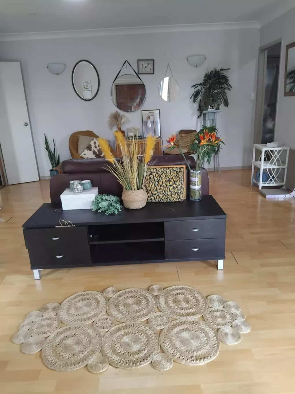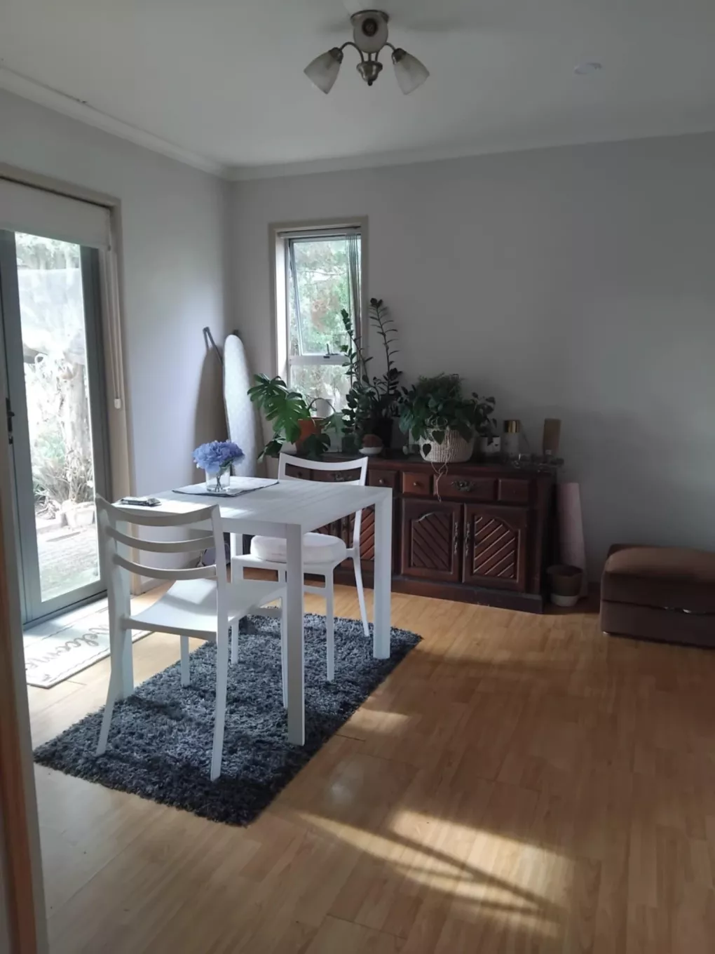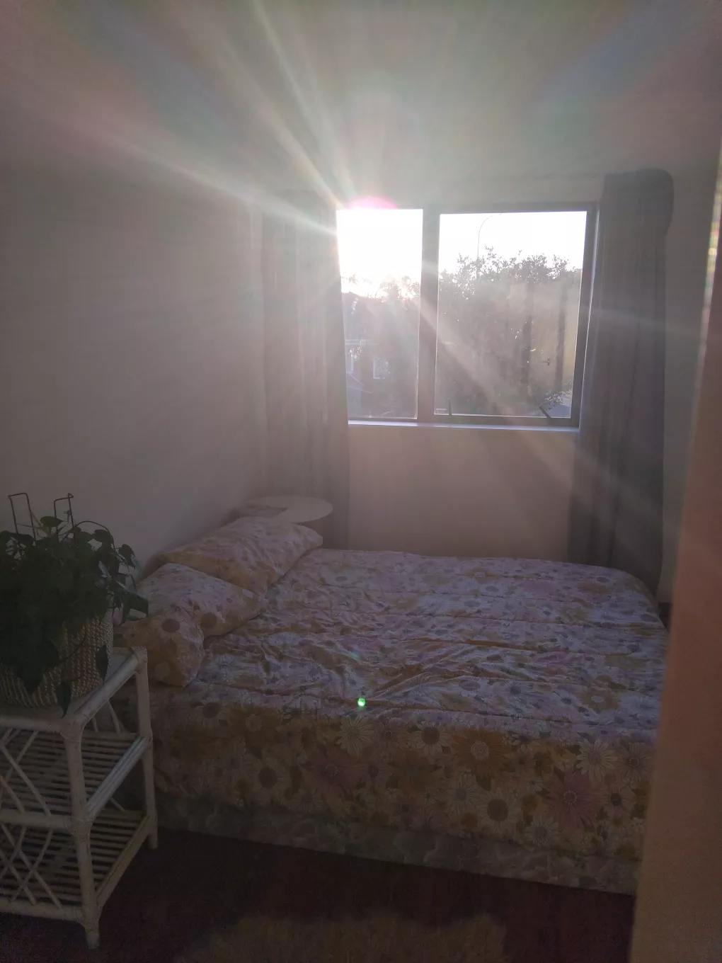 Your double room can be furnished OR unfurnished with double bed & side table (as seen in Main photo). Has inbuilt storage shelf on one side, on this side there is room for a desk/tv/gaming set up comfortably with your bed on the other wall facing it. A huge window on the other side you can see Pigeon Mountain from in the distance.