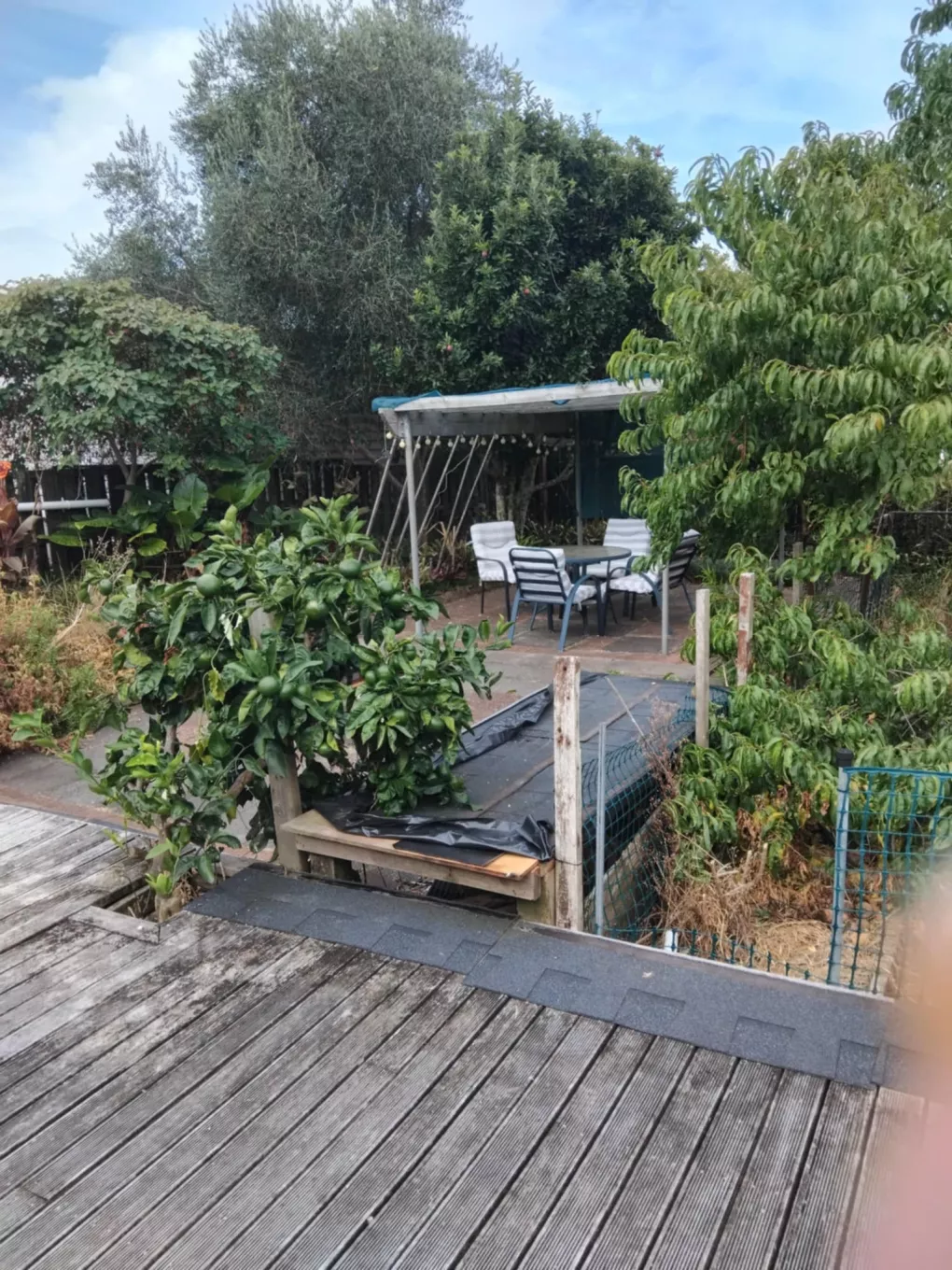 We have a HUGE backyard and plot of Land filled with orchard trees (Peach,Fig,Mandarin etc) Vege Garden space, and a courtyard patio with chairs, table, fairy lights, social area or place to meditate and read in the sun
