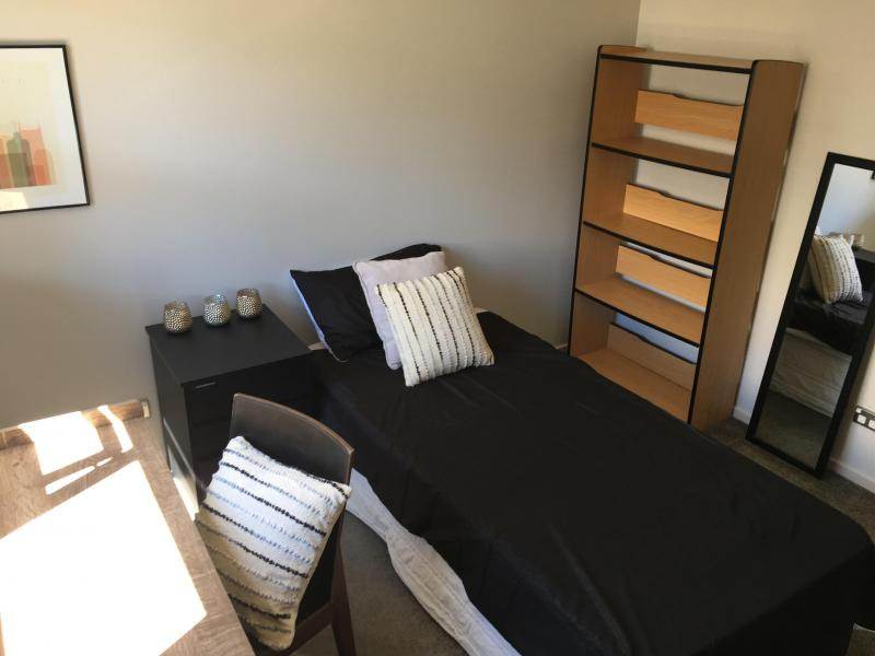 Furnished bedroom with built in wardrobe.There is option for Single Bed and Double Bed for couple or you can bring your own. House is fully furnished (dedicated space in fridge and freezer, microwave, toaster, gas stove and oven, washing machine, dish drawer, TV etc). There is a nice spacious shared kitchen, you will have your dedicated space in kitchen cabinet, nice living area and small garden in the front. Private secure house, with security gate access and alarm, internal double garage which currently set for storage. Looking for professional working or student, tidy, clean, organised and respectful, pays the rent in time.